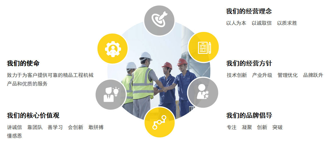 以員工、客戶、合作伙伴為晉工發(fā)展之根本,坦誠相待、互信互利,實現與多方的和諧共生、共贏。在不斷發(fā)展中自主創(chuàng)新,以客戶的需求為晉工發(fā)展創(chuàng)新的源動力,不斷推出性能優(yōu)良、品質可靠的產品來贏得市場,也贏得更多客戶的信賴。做精品,負責任,與第三世界國家的建設同步。做優(yōu)秀的民族品牌。